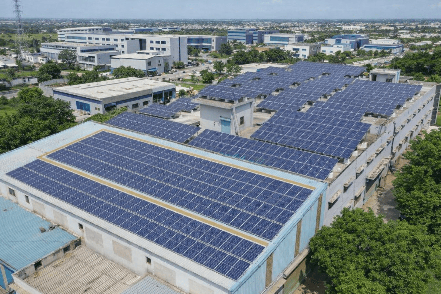 Large-scale solar installations for businesses, factories, and large buildings, providing significant cost savings, energy independence